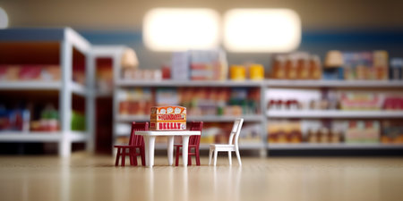 Vibrant display of packaged items in a store, captured with bokeh lighting and neon colors for a modern, eye-catching retail atmosphere.