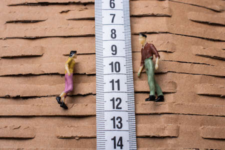 Man and Woman figurine and soft measuring tape. tape measure with metric scale