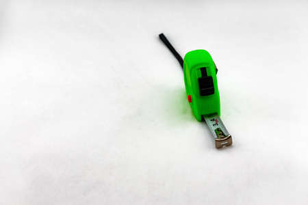 Five-meter measuring tape green on a white background.Isolate.