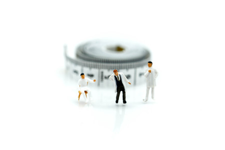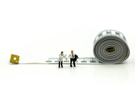 Miniature people : Doctor and patient with tape Measure,Healthcare and diet concept.