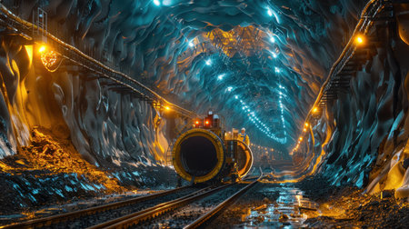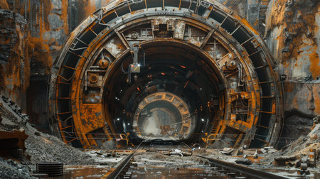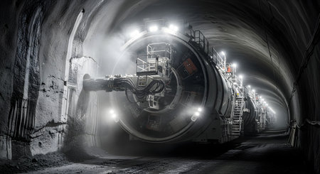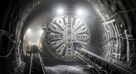 A tunnel boring machine works meticulously underground, slicing through rock and soil to create a new passage for urban infrastructure.