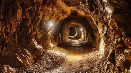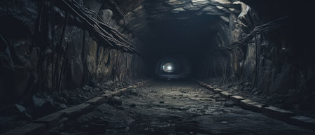 Deep within an abandoned mine, a narrow tunnel reveals the remnants of past labor. Haunting shadows dance on the rocky walls, while the soft glow of light breathes life into this forgotten space.