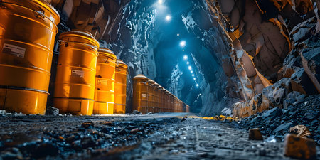 This illustration showcases a rugged, industrial style with a focus on detailed textures and strong color contrasts. Ideal for educational materials, safety training, or mining industry publications. The composition effectively communicates the theme of mining through symbolic representation. AI-generated illustration.