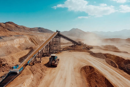 surface mining operation, with massive earthmoving equipment moving dirt and rock, created with generative ai