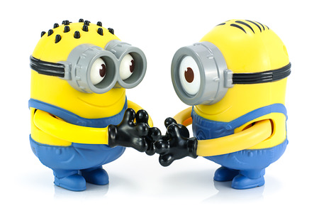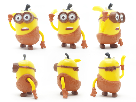 Minions toy isolated on white background an action figure from Despicable Me series animated 3D film produced by Illumination Entertainment for Universal Pictures.