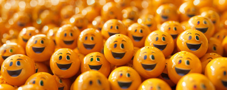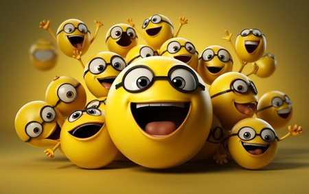 Group of shiny yellow spheres showing happy faces is creating positive emotion
