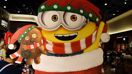 Bangkok, Thailand - November 11, 2023 : Minions Q-TOPPING Christmas Version. Cute a little Minion character of Christmas Version