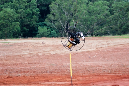 Bila Tserkva, Ukraine. June 20, 2016 Paragliding, training flights with paramotor. Flight and altitude control