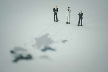 Business figurine placed with antique earth globe.