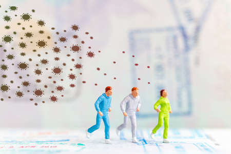Social distancing, people keeping distance to protect COVID-19 coronavirus outbreak spreading concept, miniature keep distance each other