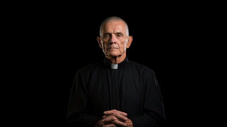 Portrait of priest with pray. Monk man oblation. Senior religion holy male with a confident expression. Isolated.