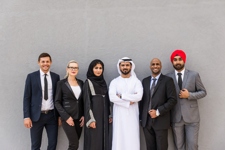 Portrait of confident business team standing in office. Multiethnic group of business people.