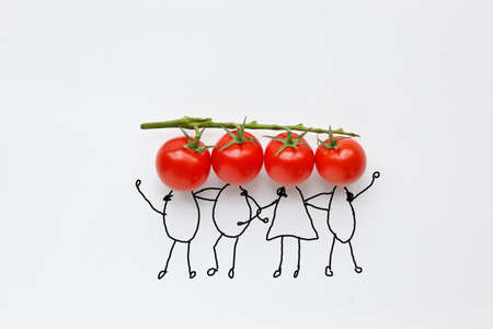 cherry tomatoes with hand drawing shapes of friends or team