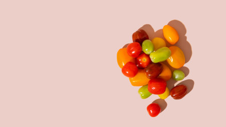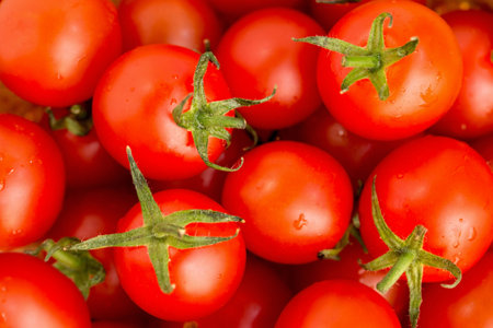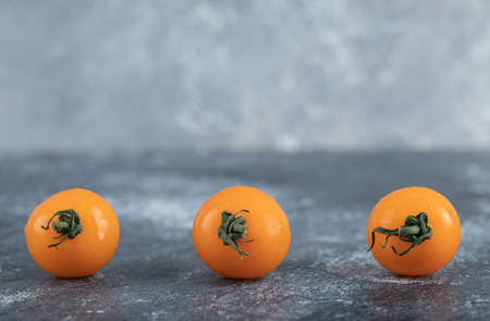 Top view of fresh oraned color cherry tomatoes