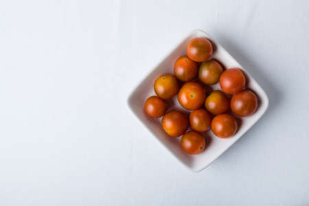 Still life of a bowl of ripe cherry tomatoes. Fresh and healthy food in any type of diet.