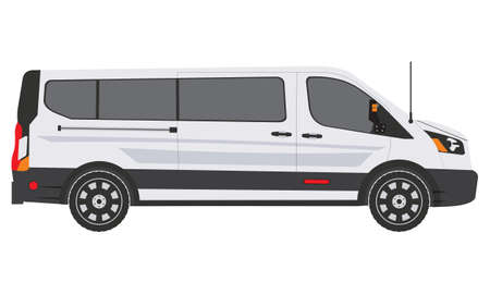 Vector illustration of a white van on a white background. Side view.