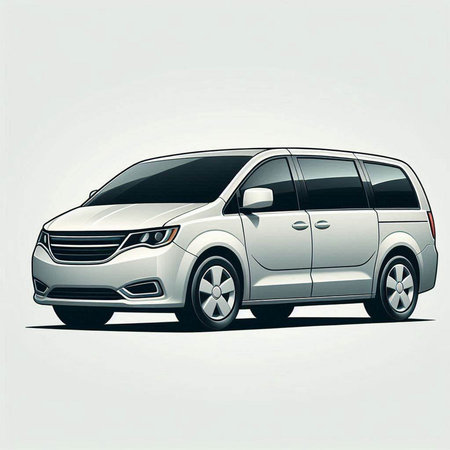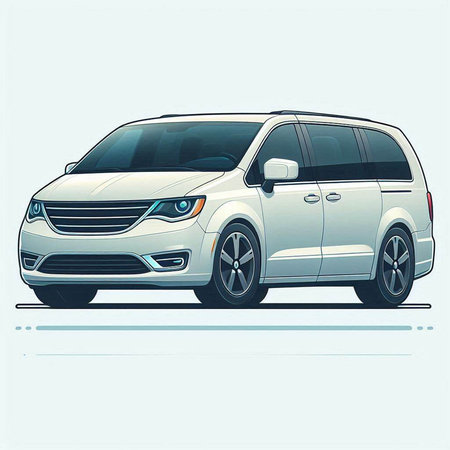 Stylized vector illustration of the brandless minivan car. Conceptual image of transportation