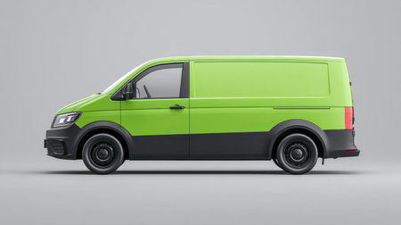 Bright green delivery van showcases a modern design, perfect for urban transportation needs. Ideal for logistics and commercial services, this vehicle emphasizes efficiency.