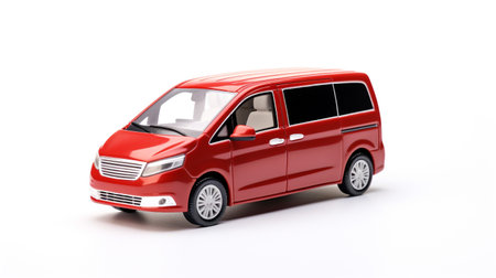 3d rendering of a small red van on white background with shadow