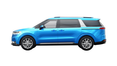 Dallas, USA. December 12, 2022. KIA Carnival 2022. Blue large premium-level minivan car for business and family. 3d rendering