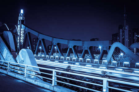 Night view of the modern bridge over the Huangpu river in Shanghai, China
