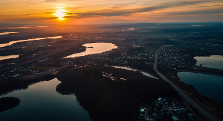 Aerial photo of National Park Braslau Lakes; Belarus after sunset