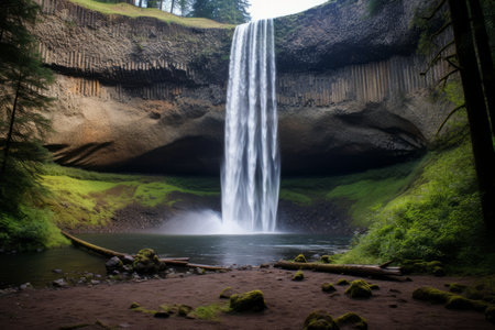 the essentialness of a dazzling waterfall since it bounced down callous cliffs, making a dim appear. Creative resource, AI Generated