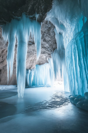 Majestic ice cave with shimmering blue ice formations
