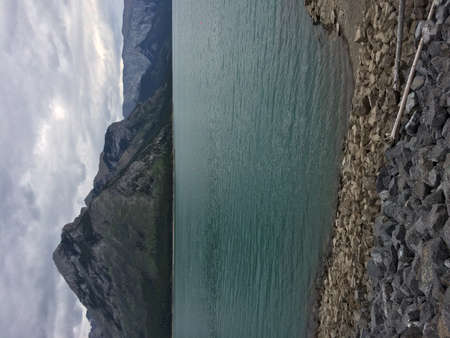Mountain lake in the Rocky Mountains of Canada. The concept of active and photo tourism