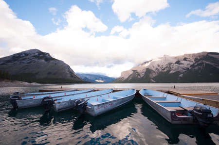 Lake Minnewanka in Banff National Park, Alberta, Canada. Glacial lake in Alberta.