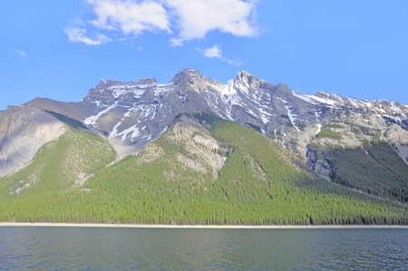 Beautiful view of Minnewanka Lake in Banff National Park in Canada