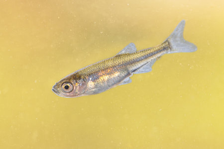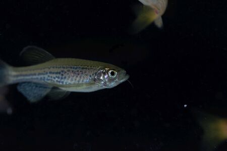 Ninespine stickleback (Pungitius pungitius) freshwater fish in natural habitat of pond. swimming in water of river. Wildlife scene of nature in Europe