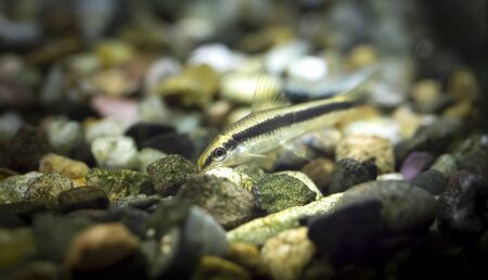 Freshwater catfish in home aquarium. Corydoras paleatus.