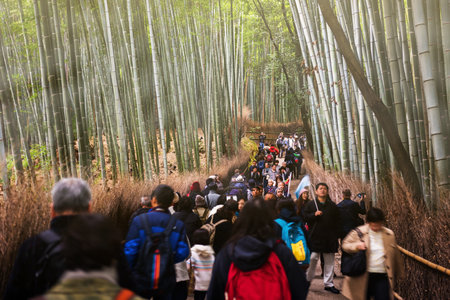 Arashiyama Bamboo Forest in Kyoto, Japan. Arashiyama is one of the most popular tourist destinations in Kyoto.