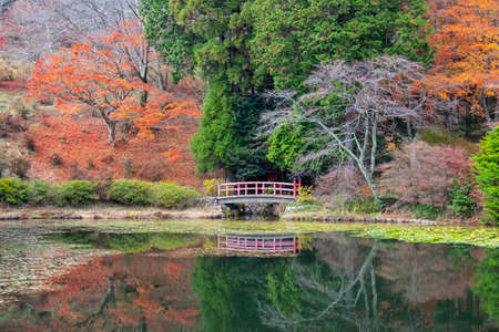 Kyoto Hagino Small diameter of bamboo forest in autumn leaves season Green of bamboo and cedar gro plants and red of autumn leaves