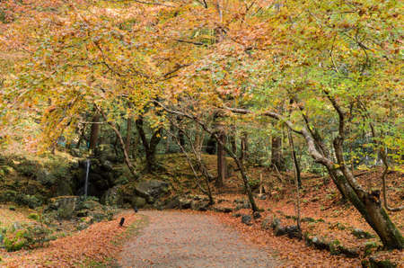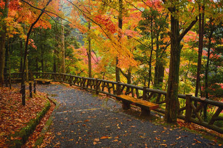 Hiking path colored with autumn leaves in Minoh, Osaka