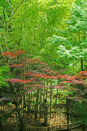 Kyoto Hagino Small diameter of bamboo forest in autumn leaves season Green of bamboo and cedar gro plants and red of autumn leaves