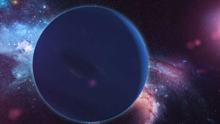 beautiful surface of the planet against the background of stars and galaxies in bright colors, space fantasy, space background 3D render