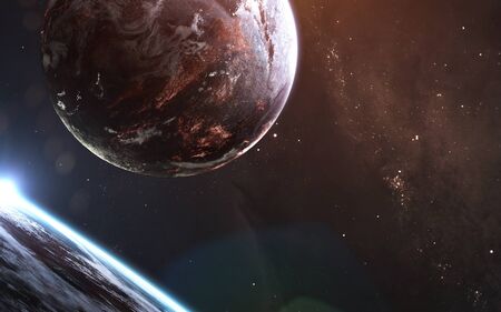 Deep space planets, awesome science fiction wallpaper, cosmic landscape. 3D render