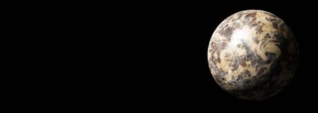 Abstract realistic space spinning planet round sphere with a relief stone surface in space.