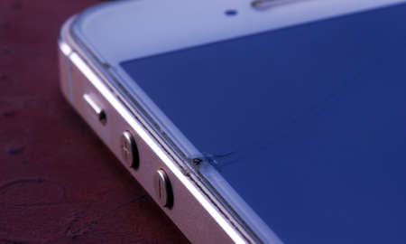 Broken protective glass for mobile phone. Smartphone tempered glass shield