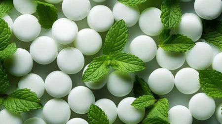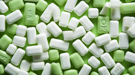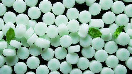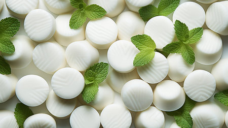 White and green mint candies background. Sweet backdrop. Generative AI.
