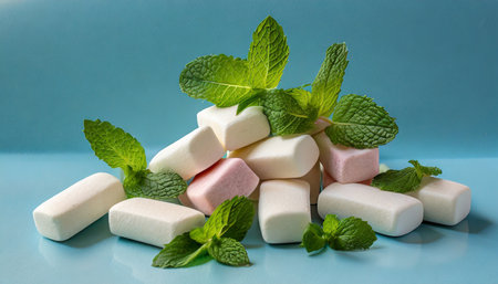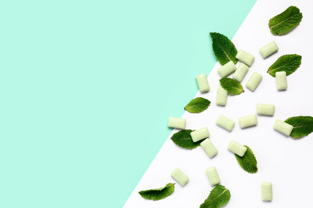 mint chewing gum and mint on the table. Fresh breath, oral care