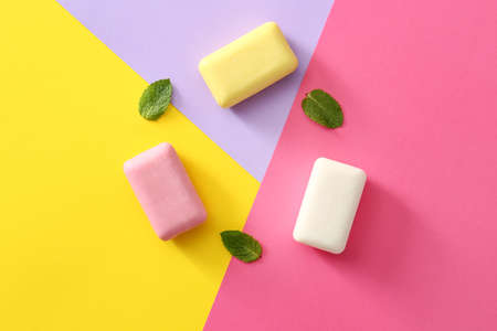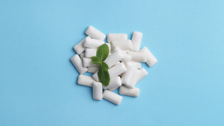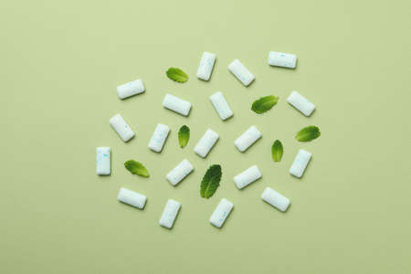 Chewing gums on white background. Sugar coated chewing gums for teeth health.