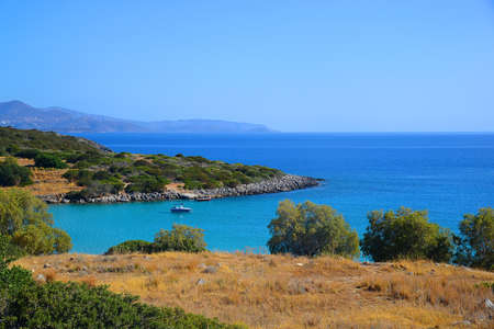 Beautiful nature views of the shore and the bay of Stalis and Sissi near Heraklion, Crete, Greece.