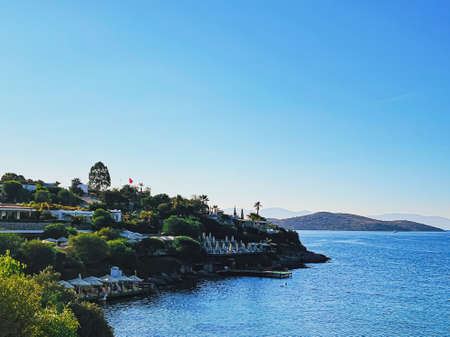 Coastal riviera and summertime travel concept. Sea, mountains and beach resort as seaside landscape and summer getaway destination