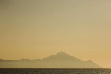 Greek Republic. Sunshine in sea and swimming people. In the distance mountains and sky. 17. Sep. 2019.