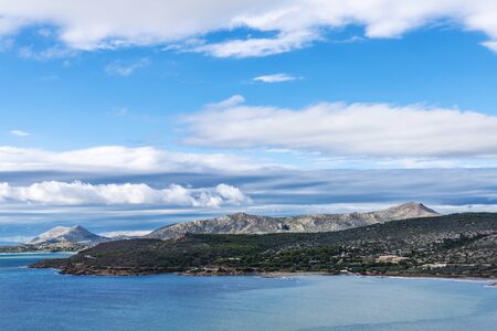 Overview of the coast of East Attica from the Cape Sounion in Greece