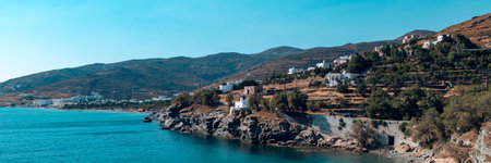 Kionia Beach swimming, the place to embrace the Aegean Sea, Tinos, Greece, banner size