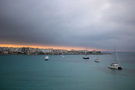 Otranto, Italy - August 04, 2020: buildings and boats in the city of Otranto, Italy.